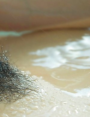Yuna Yamami pleasures hairy pussy with shower