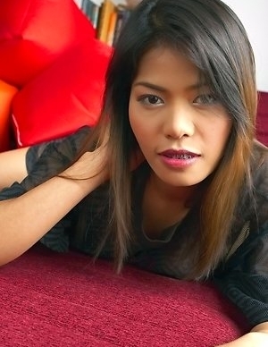 Check out amazing Ning Nara as she poses for the cameras in the living room. She looks so sweet and cute in her sheer t-shirt, but she knows that she