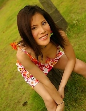 Lovely Jam Jaminga is on all fours posing for your eyes. She looks so hot on that grass that you would love to be there with her.