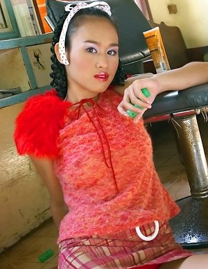 Lena Jung gives this salon a burst of electricity as she shows off her hotness. She has her hairy curly and her pink clothes are ready to be stripped