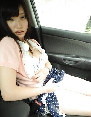 Akiho Yoshizawa in sexy outfit is naughty in car and on road