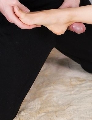 Leggy and lusty Anna Matsuda gets this dude to cum all over her sexy feet