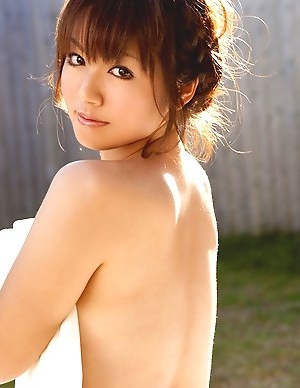 Sayaka Isoyama hides big boobs under sheets in the garden