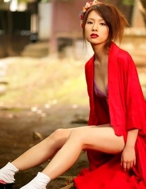 Saki Seto takes geisha outfit off and shows leering curves
