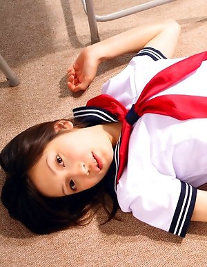 Japan teen Yuzuki Hashimoto in sailor gal uniform is playful outdoor